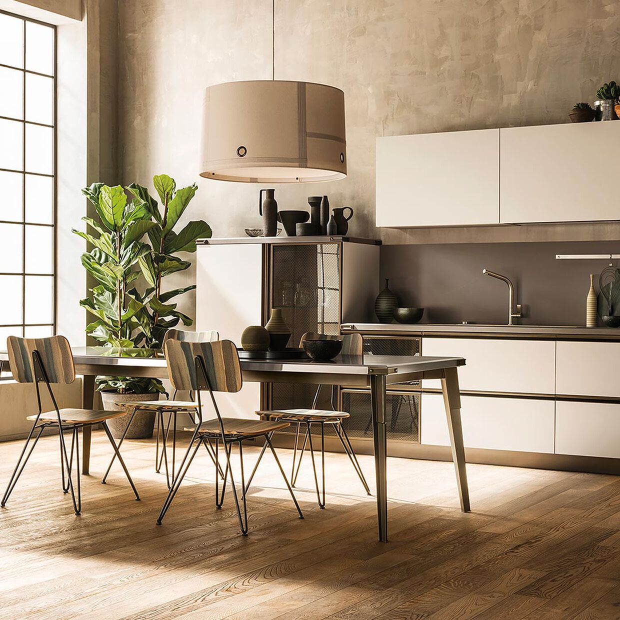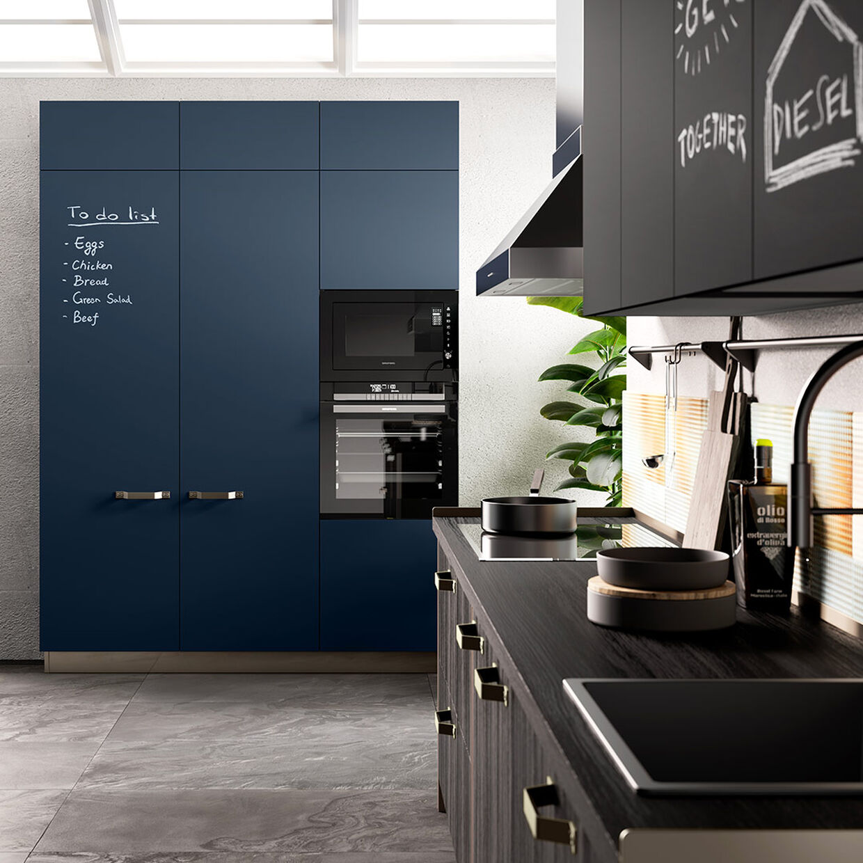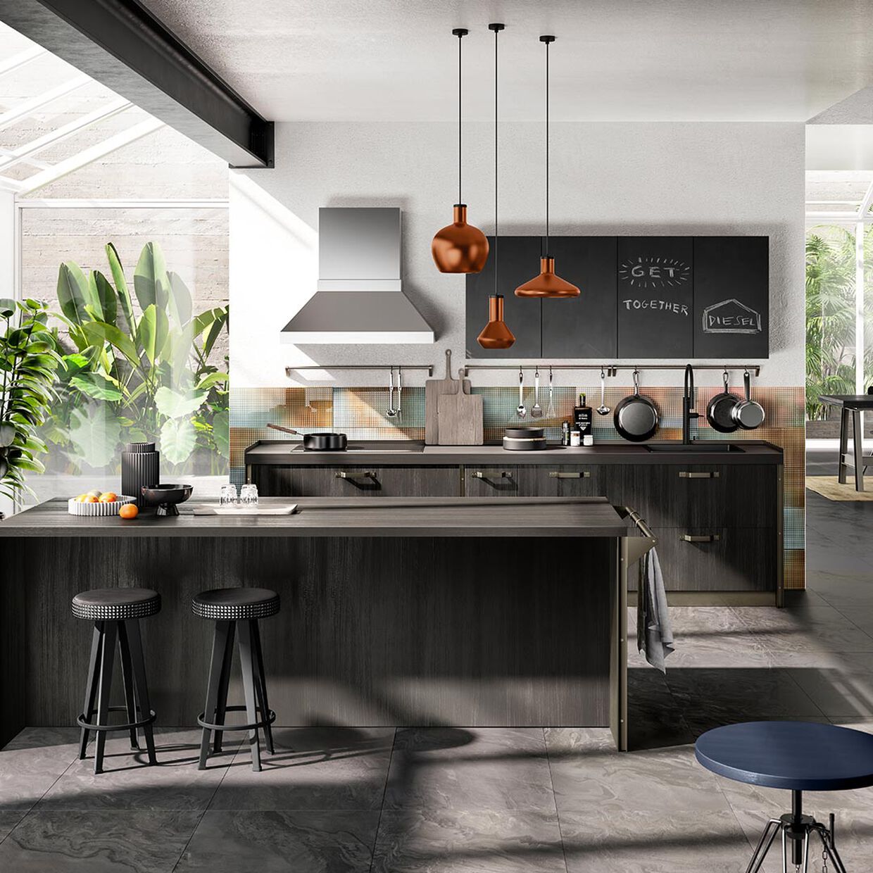 Diesel’s style and know-how join forces with Scavolini’s know-how to create a new-concept kitchen: Diesel Social Kitchen, a kitchen that becomes a complete environment, where the pleasure of cooking naturally combines with the pleasure of spending time with friends.