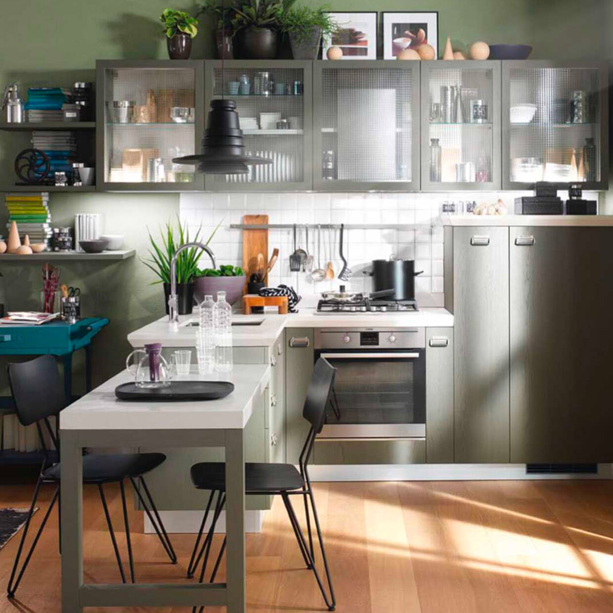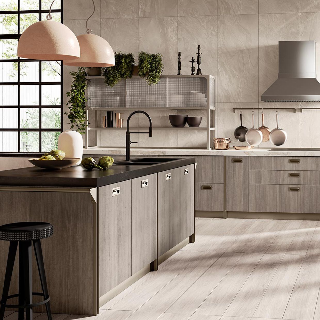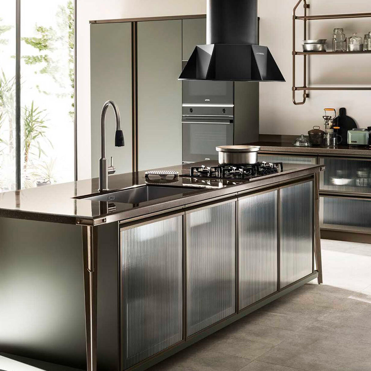 A kitchen for social life, a space that expands, intelligently and conveniently, surprising you not only with its eye-catching design but also with the sophistication and quality of its materials. The perfect place for socialising and expressing your style.